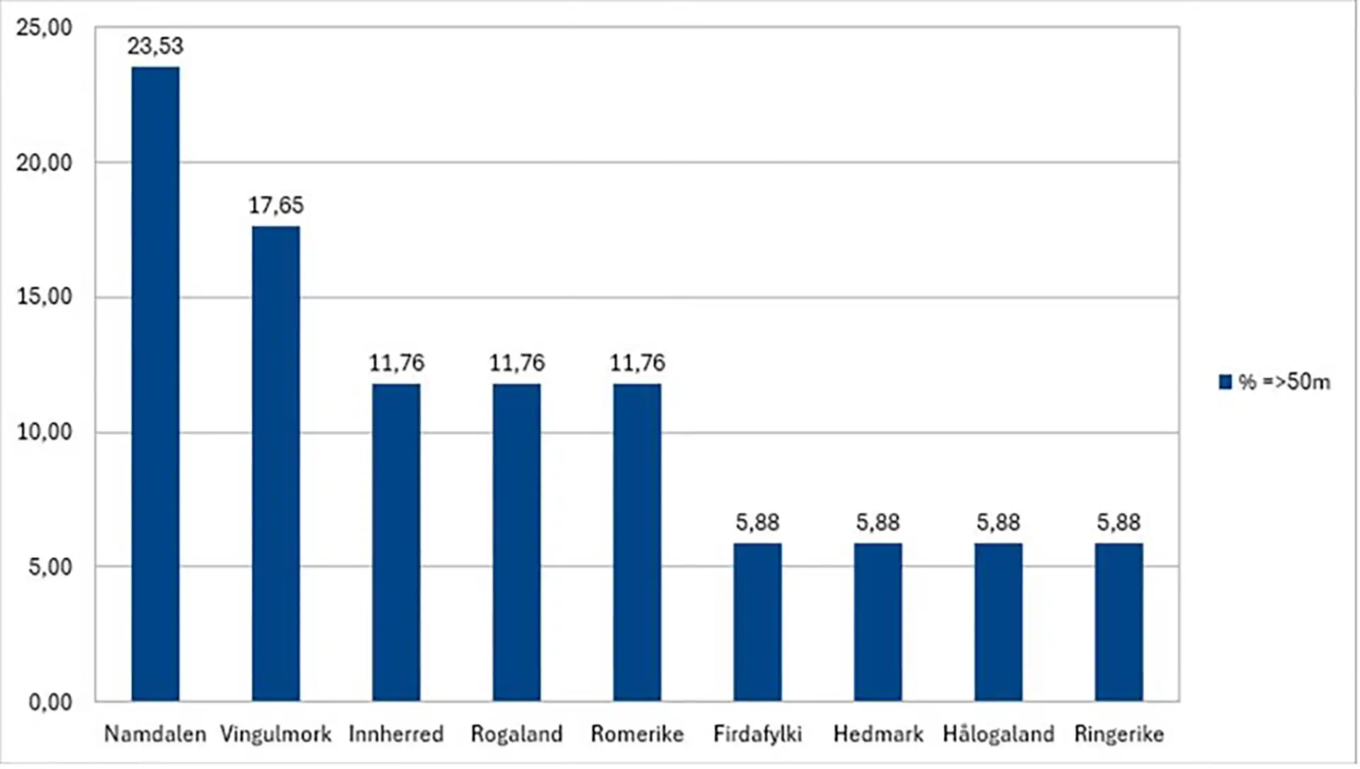 | Region Vikingtid | Antall =>50 m | % =>50 m |